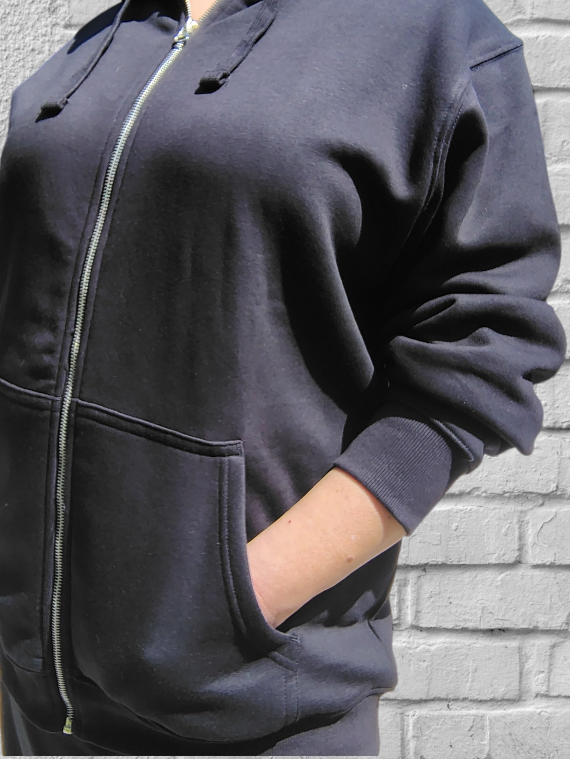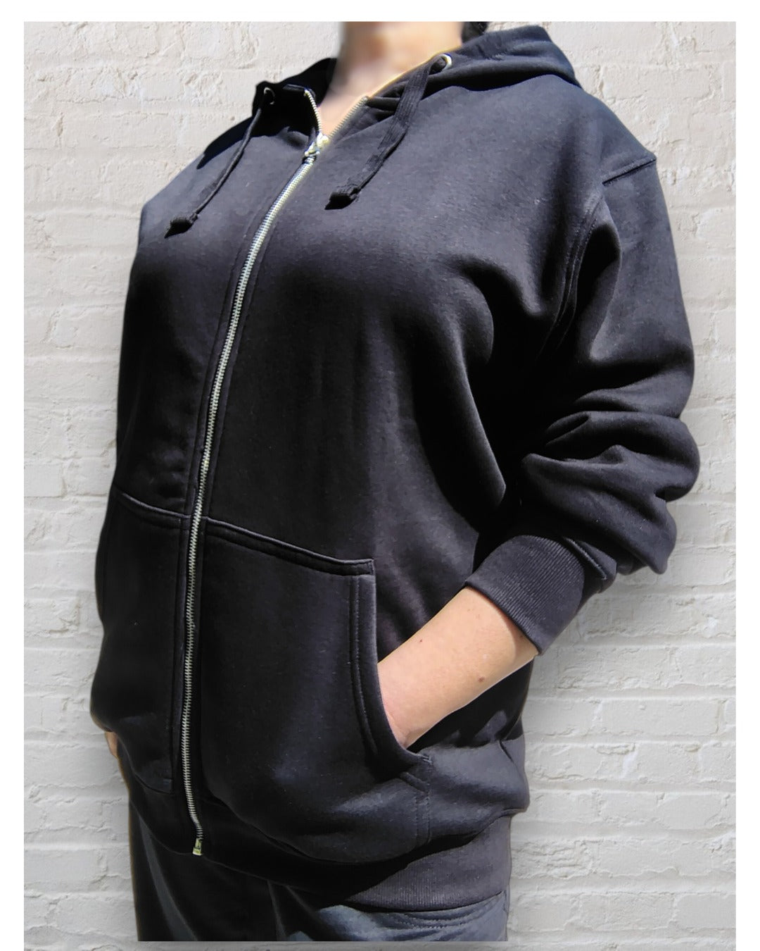 Polerón Canguro Negro con Cierre 100 % Algodón