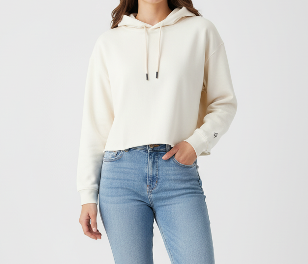 Polerón crop confeccionado en mezcla de 60% algodón y 40% poliamida. Tela suave, cómoda y dócil al tacto, con excelente calce para uso diario. Disponible en tallas S, M, L y XL. Ideal para un look urbano y versátil.